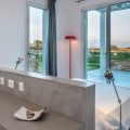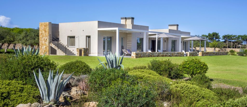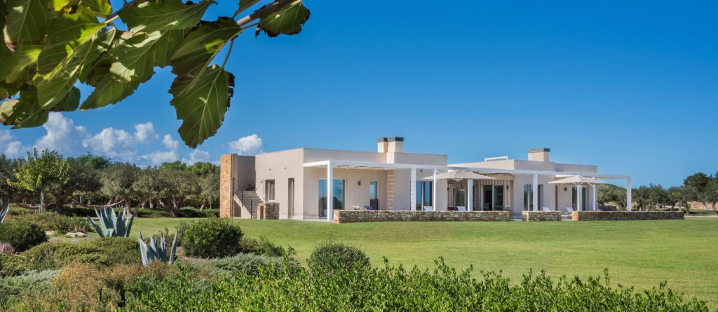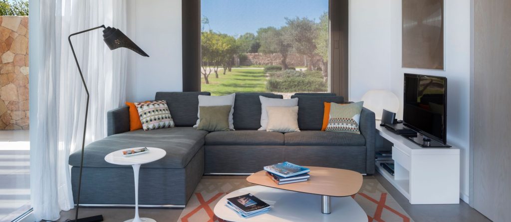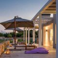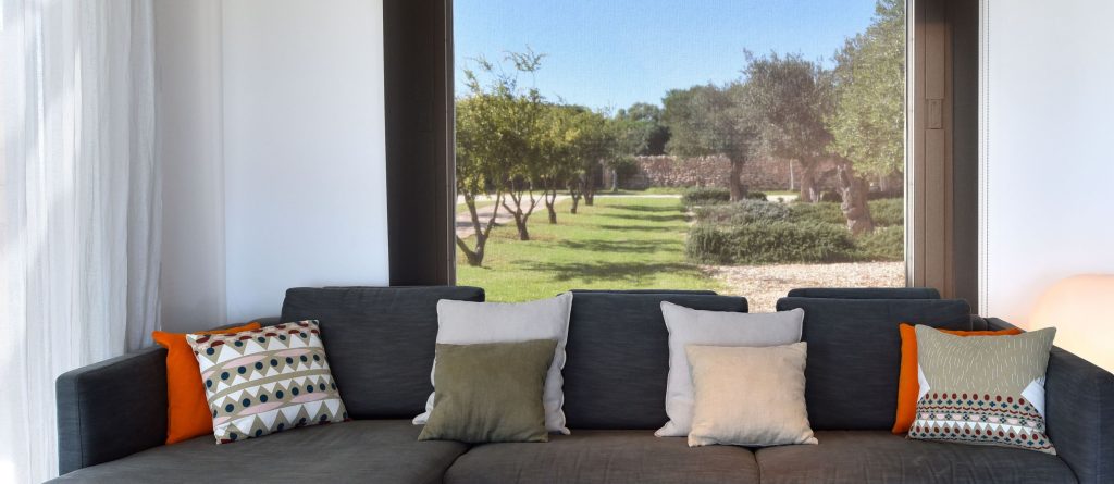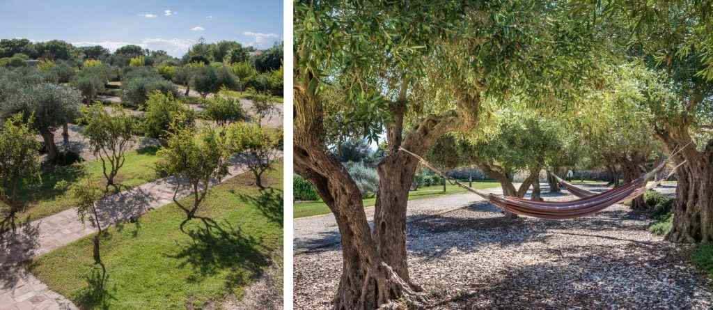 On the sweeping grounds, there’s a swimming pool, a solarium, and a roof terrace with a 360° view. Hidden away, yet very close to the town centre, this estate offers three bedrooms decorated in modern style with colour-washed walls in pale shades, contemporary fabrics, and bespoke furnishing by local Italian artisans. Set amid a lush olive grove, it also comes with a covered BBQ