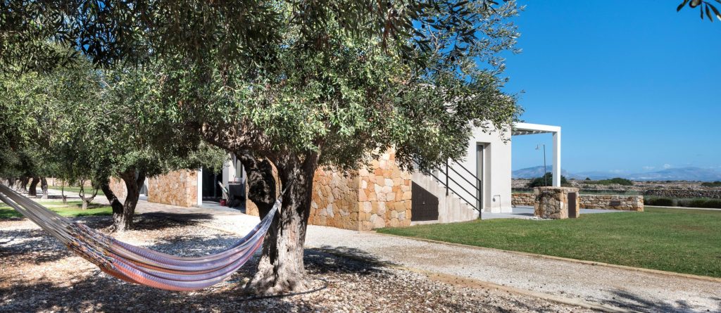 The interior of the property measures 350 square meters and it can accommodate a total of six adults, with a double sofa bed available for two extra friends or staff. The interior design plays to the history, yet is very contemporary and features sandstone, a typical rock of the Sicilian coastline, resin floors and quality washed wooden boards. Modern yet very comfortable, this is a chic retreat full of light and a welcoming vibe. The estate comes with a Mediterranean garden and 15,000 square meters of private grounds.