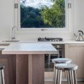• Alfresco dining area between the two houses with a table for 8 guests with a sink, fridge and gas BBQ