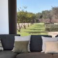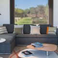 Constructed on one level from two main structures connected by a central alfresco patio, the house affords views of the scenic landscape from almost every angle. The interiors include two living rooms, a dining area with garden vistas, and an ‘eat-in’ well-equipped kitchen in one building with a kitchenette in the other.