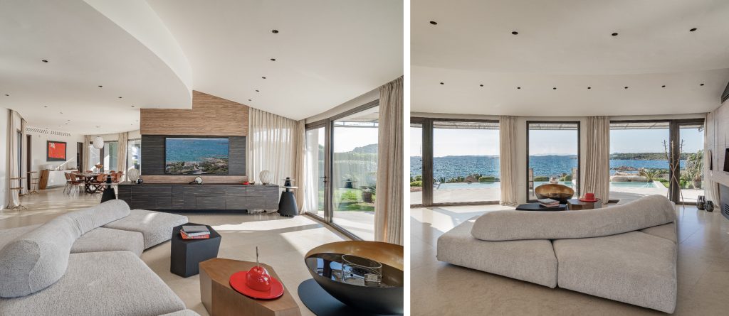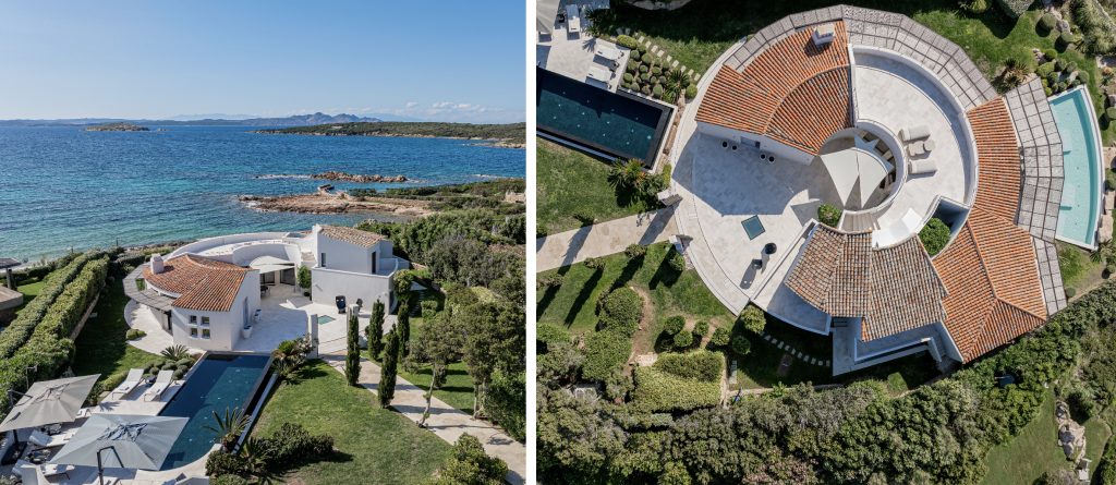 An exquisite white circular villa, perfectly positioned on the seafront in Porto Cervo, Sardinia.