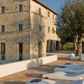 Close to some evocative small villages characterised by narrow streets, the house is tastefully decorated with new furniture and modern comforts such as wireless internet, floor cooling and heating system in the whole house and outstanding views. Outside, there’s a cotto terrace with a barbecue and an infinity swimming pool. Originally a 1700 farmhouse it has been recently renovated with a contemporary anti-seismic architecture concept. The interiors include a spacious living room, a dining area with garden vistas, a professionally equipped kitchen and a gym.