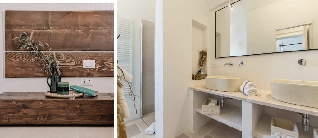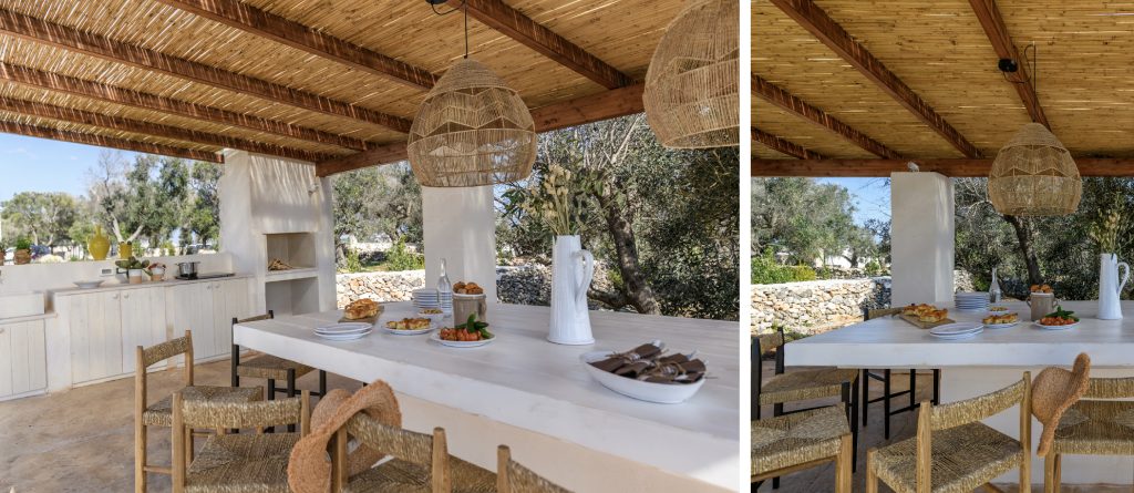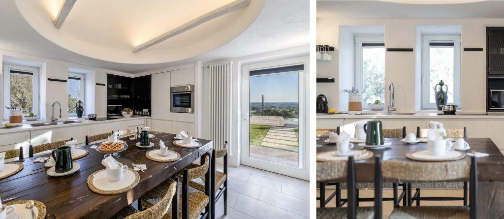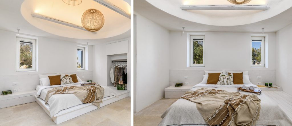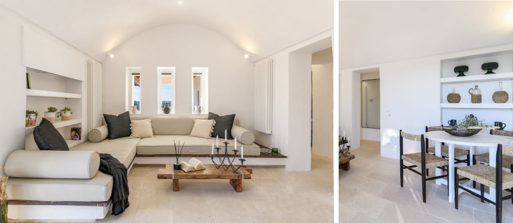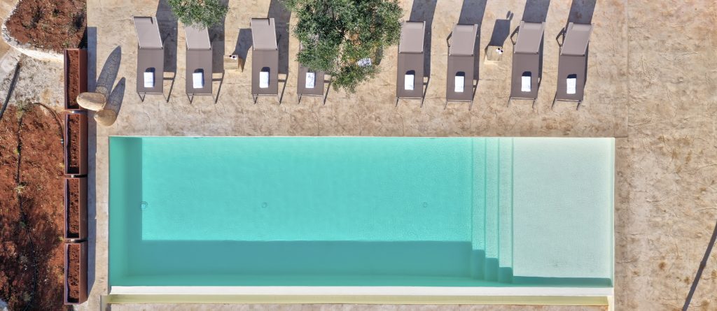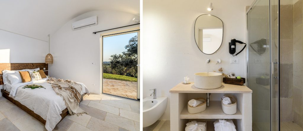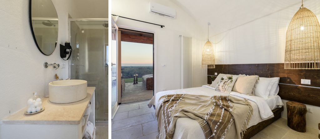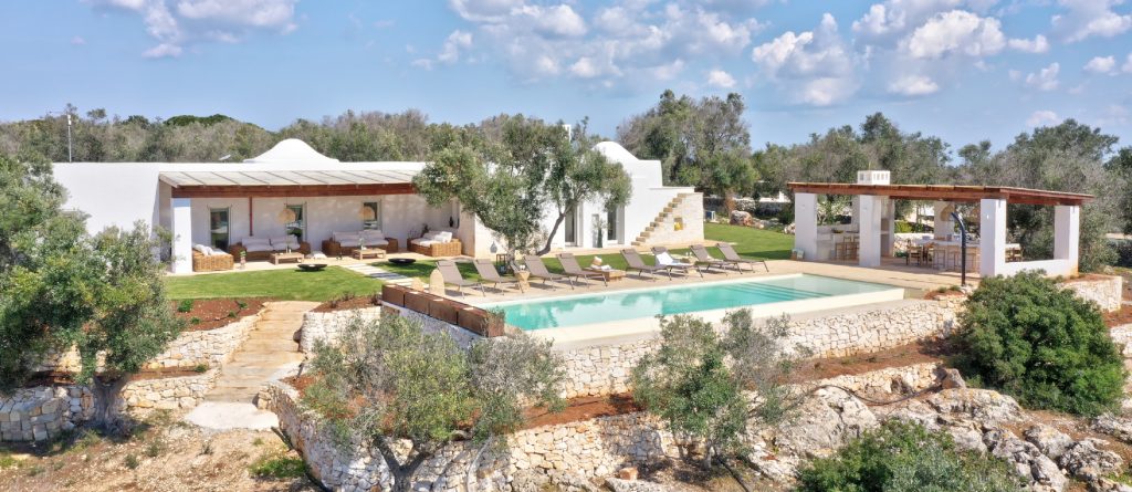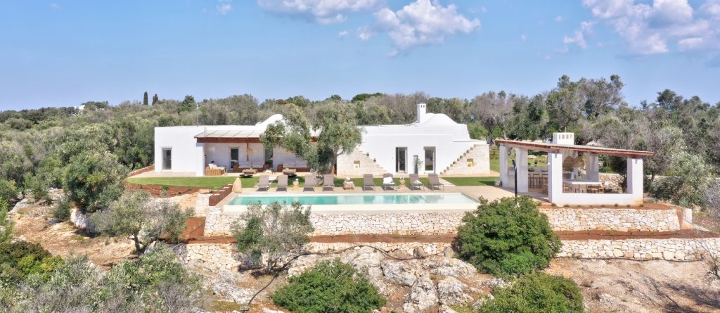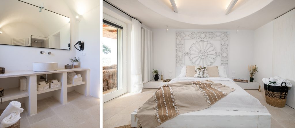 Each bedroom boasts an ensuite bathroom and a smart TV, ensuring utmost convenience and relaxation for every guest.Elements of classic Apulian residential architecture, such as the exposed stones, are combined with modern accents, including floor to ceiling windows and modern infrastructure and energy-saving systems. Locally sourced materials, including tuff stone, lime, and wood, further enhance the villa’s authentic charm while ensuring a sustainable footprint.
