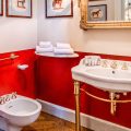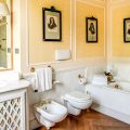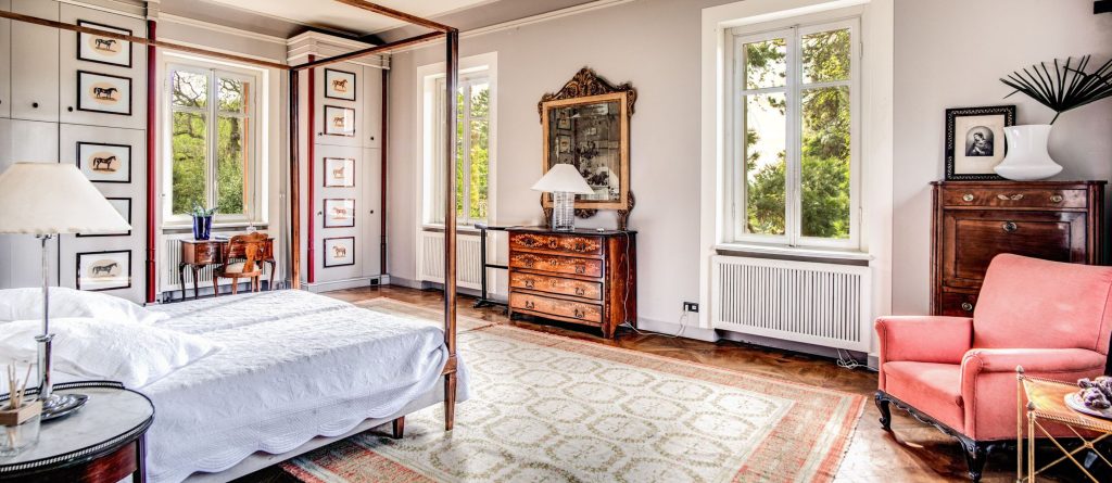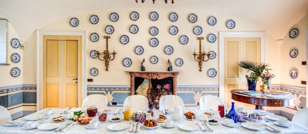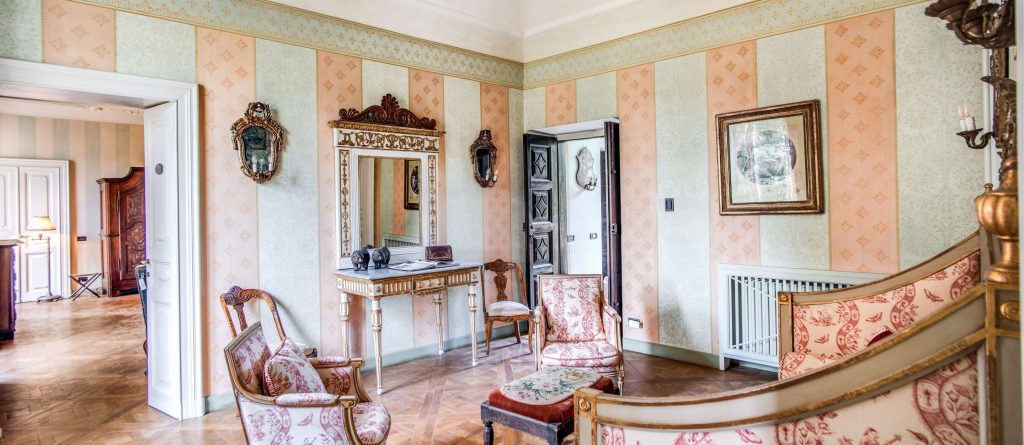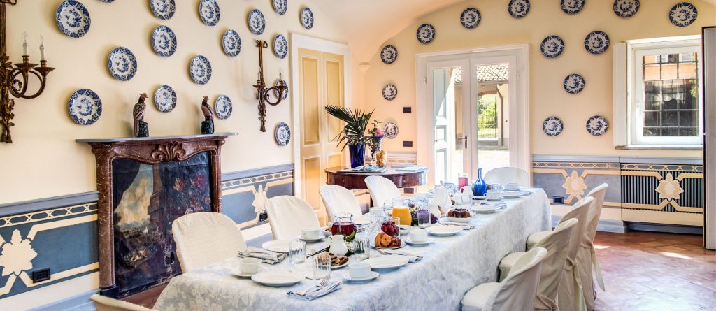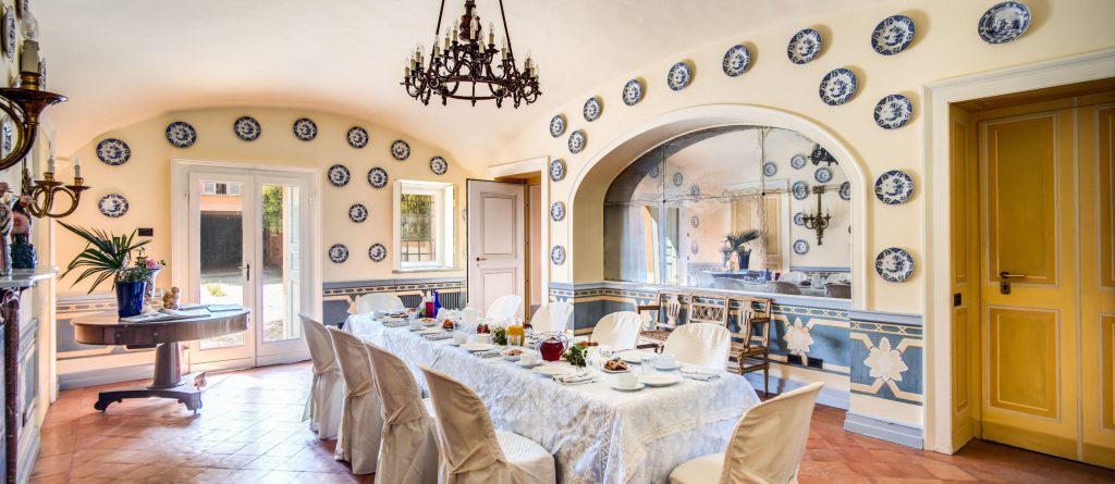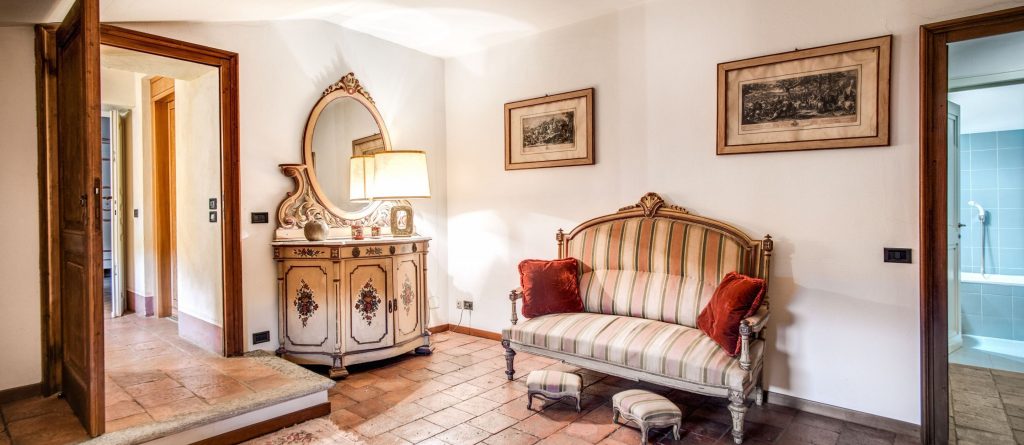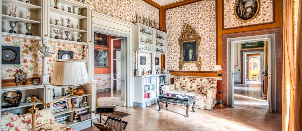 The villa is tastefully decorated and pays respect to its opulent past. It features restored furniture from the 18th century, refurbished wooden boards and terracotta floors and frescoed and vaulted ceilings. Floral themes provide a sense of continuum between the interiors and the exteriors. The history of the villa, and its owners, are silently explained through the paintings, photos, horse-riding prizes and small décor objects which can be found in the spacious salons on the ground floor. Locally sourced traditional materials have been used including Carrara marble in the bathrooms, locally sourced wood and terracotta. A contemporary addition was the conversion of a wing of the building into an event-dedicated space with a professional kitchen and to build a swimming pool plus modern comforts such as wireless internet and smart devices.