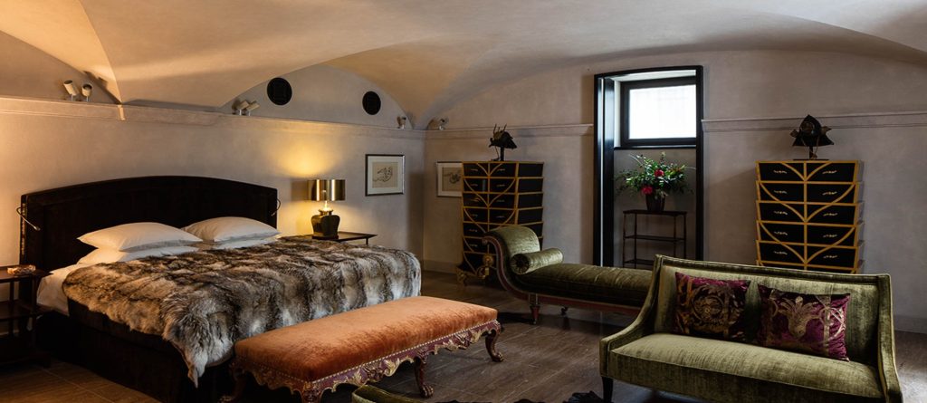 The villa counts four luxurious suites, each designed individually by the renowned interior decorator Jacques Garcia. Bold yet opulent, the design choices display Garcia’s love for Napoleonic extravagance. Rich fabrics, marble bathrooms, delicate artworks, authentic period furniture and vintage pieces by Lalique, Baccarat, Colombostile – each suite bursts with character.