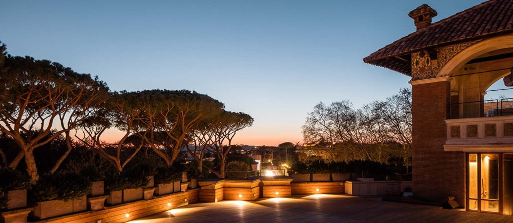 A hidden jewel, located in the heart of Rome near Villa Borghese, Villa Clara is a sumptuous historic estate that sets a new standard for luxury accommodation in the city. The story of the property began right before the start of the First World War. The idea to build this architectural beauty was conceived by an engineer Adolfo Sebastiani in 1910s. He took a large part in the development of the area that would come to be later known as the elegant Quartier Sebastiani, but among all his projects Villa Clara would remain the grandest and the most impressive. Originally, he commissioned an architect Oriolo Frezzotti to build the Villa, but unsatisfied with the initial project, he entrusted it to another famous architect, Arnoldo Foschini, who reimagined and completed it by 1929. The result was a Liberty-style building heavily influenced by Greco-Roman architecture, surrounded by a classical Italian garden. Afterwards, Villa Clara became a primary residence of a wealthy noble Italian family for several decades. Nowadays, the Villa has been carefully renovated, preserving its external and internal structure as well the historical elements of decor. Reimagined in Art Deco style, the extravagant interiors will dazzle anyone. Over 1000m2 of marble, semiprecious stone surfaces, including rare amethyst wall panels, sourced from Madagascar and Ural, and a vast art collection are hidden behind the historical 1920s facade.