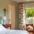 The bedrooms within the villa are arranged across two wings. In the west wing, accessible via a staircase near the entrance hall corridor, there are four bedrooms, each distinguished by its unique appellation and character: