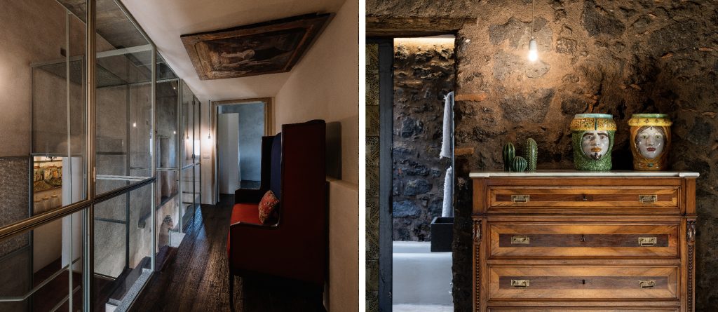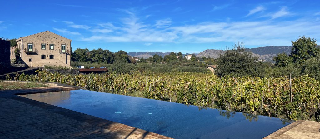Outside, the villa’s exterior boasts stunning views of the winery, perfect for leisurely runs, jogs, or serene nature walks. Constructed predominantly with lava stones, a traditional Sicilian building material, the estate exudes local charm. Indulge in outdoor living with expansive terraces, ideal for alfresco dining or unwinding against the backdrop of two volcanic slopes. The villa also boasts a 16 x 4 meter infinity pool, providing a refreshing escape with its saltwater system. Accessible via four steps, the pool promises relaxation and rejuvenation amidst Sicily’s breathtaking scenery.