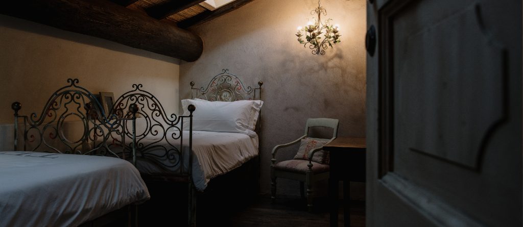 The attic space features a double twin room with an ensuite shower. This room offers a cozy retreat for two guests, ideal for those seeking a bit of seclusion.