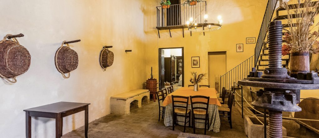 The ground floor features a wine cellar, common areas, and a fully equipped kitchen and dining areas. The old palmento has been transformed into a common sitting areas where guests can spend time together.