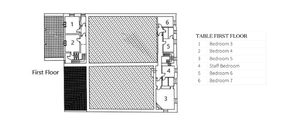 Bedroom 6: Similar to Bedroom 5, this room offers a queen bed and an ensuite shower with garden views.